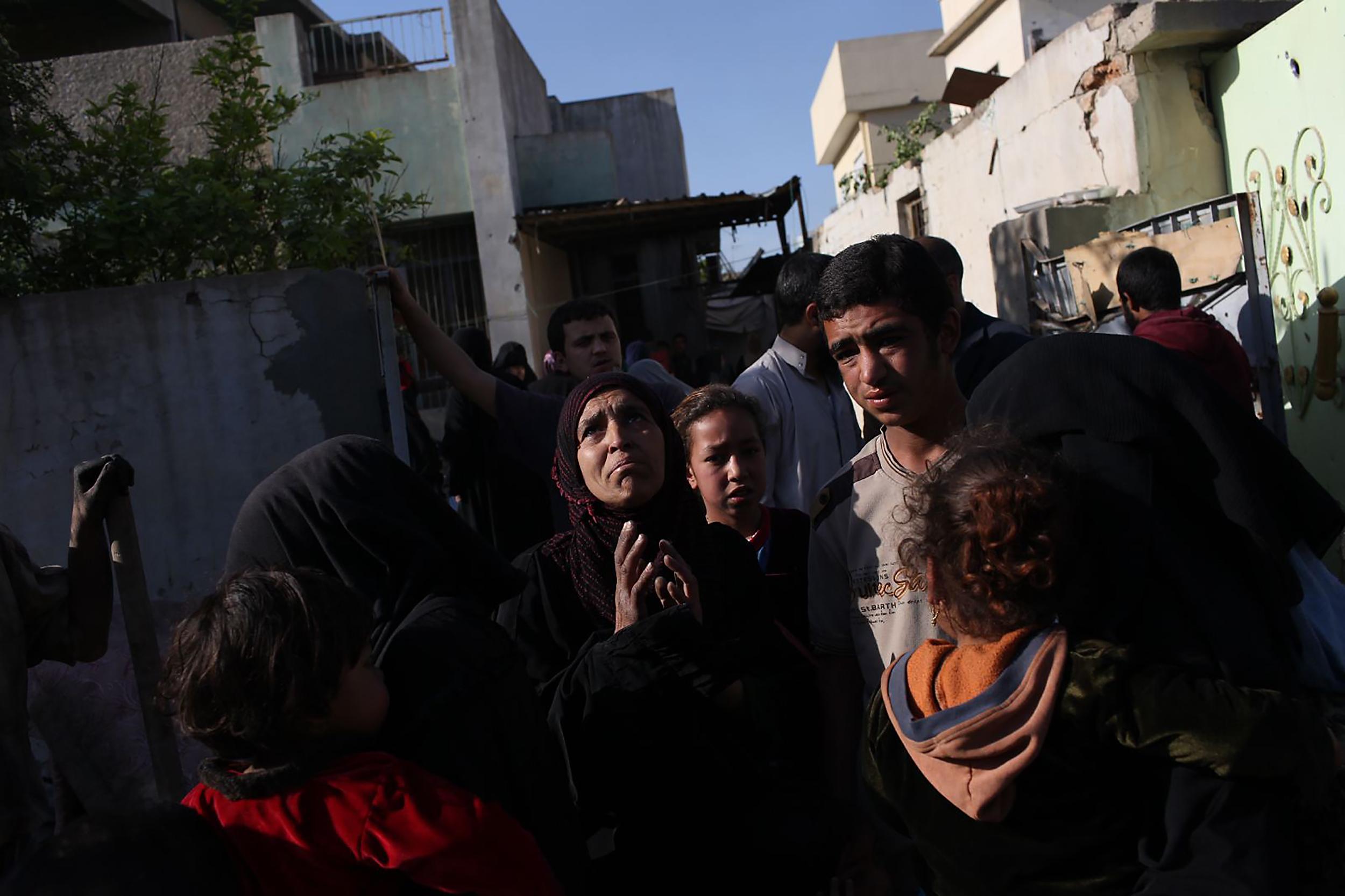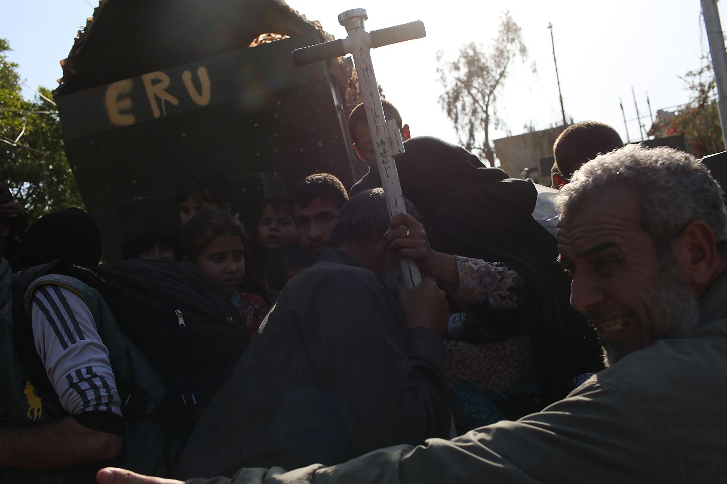 ISIS는 이라크 정부군의 진격을 늦추기 위해 일반 시민들을 인간 방패로 삼았고, 퇴각 도중 일부를 포로로 삼아 데리고 갔다. 생이별한 가족들을 찾는 아비규환의 혼란이 이어졌다. 2017년 4월 모술, 이라크