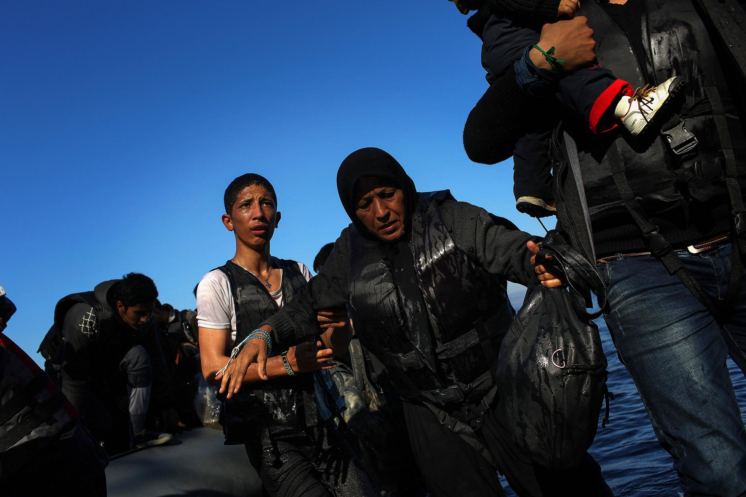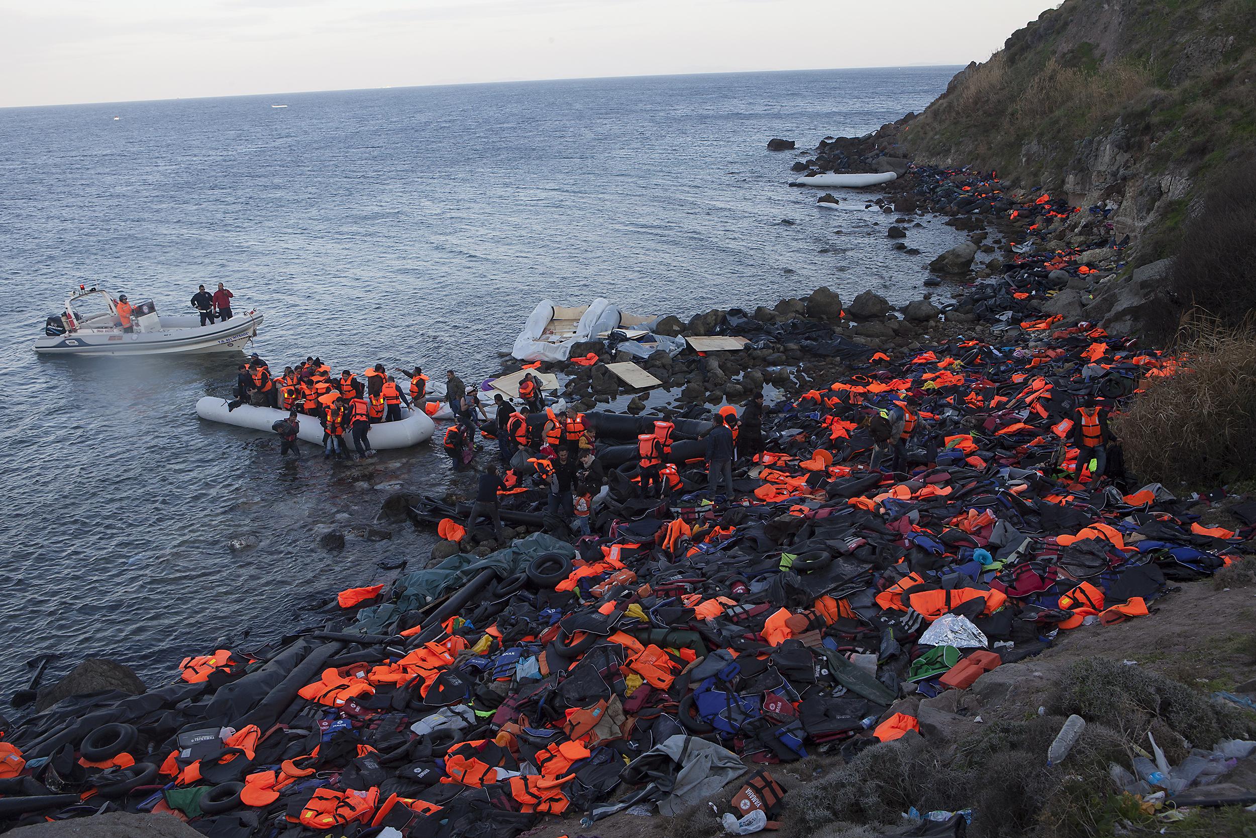 레스보스섬에 도착하는 아프가니스탄 난민들. 시리아의 내전이 조금 더 근래에 벌어지고 있다는 사실 때문에 시리아 출신 난민들이 더 주목을 받았지만 사실 탈레반의 통치와 2000년대 초반부터 시작된 미국의 개입으로 아프가니스탄에서 발생하는 난민의 숫자도 무시할 수 없는 수준이다. 2015년 11월 레스보스, 그리스