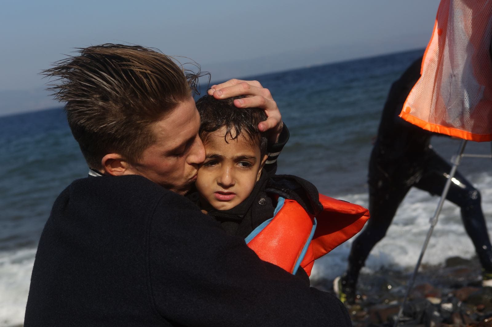 초겨울 바람을 맞으며 이제 막 바다를 건너온 시리아 난민 아동을 체코에서 온 한 자원봉사자가 꼭 안아주고 있다. 이 역사적인 난민의 이동은 역설적으로 인류애를 확인하는 장이기도 했다. 수많은 자원봉사자들이 먼길을 달려와, 난민들이 도착하는 해안가나 이들이 지나가는 국경지대에서 이들에게 따뜻한 차 한잔, 이불, 그리고 가장 중요하게 환영한다는 한 마디를 건네기 위해 먼 길을 달려왔다. 당신들이 홀로 길 위에 있는 것이 아니라는 것을 확인시켜 주려는듯. 2015년 11월 레스보스, 그리스
