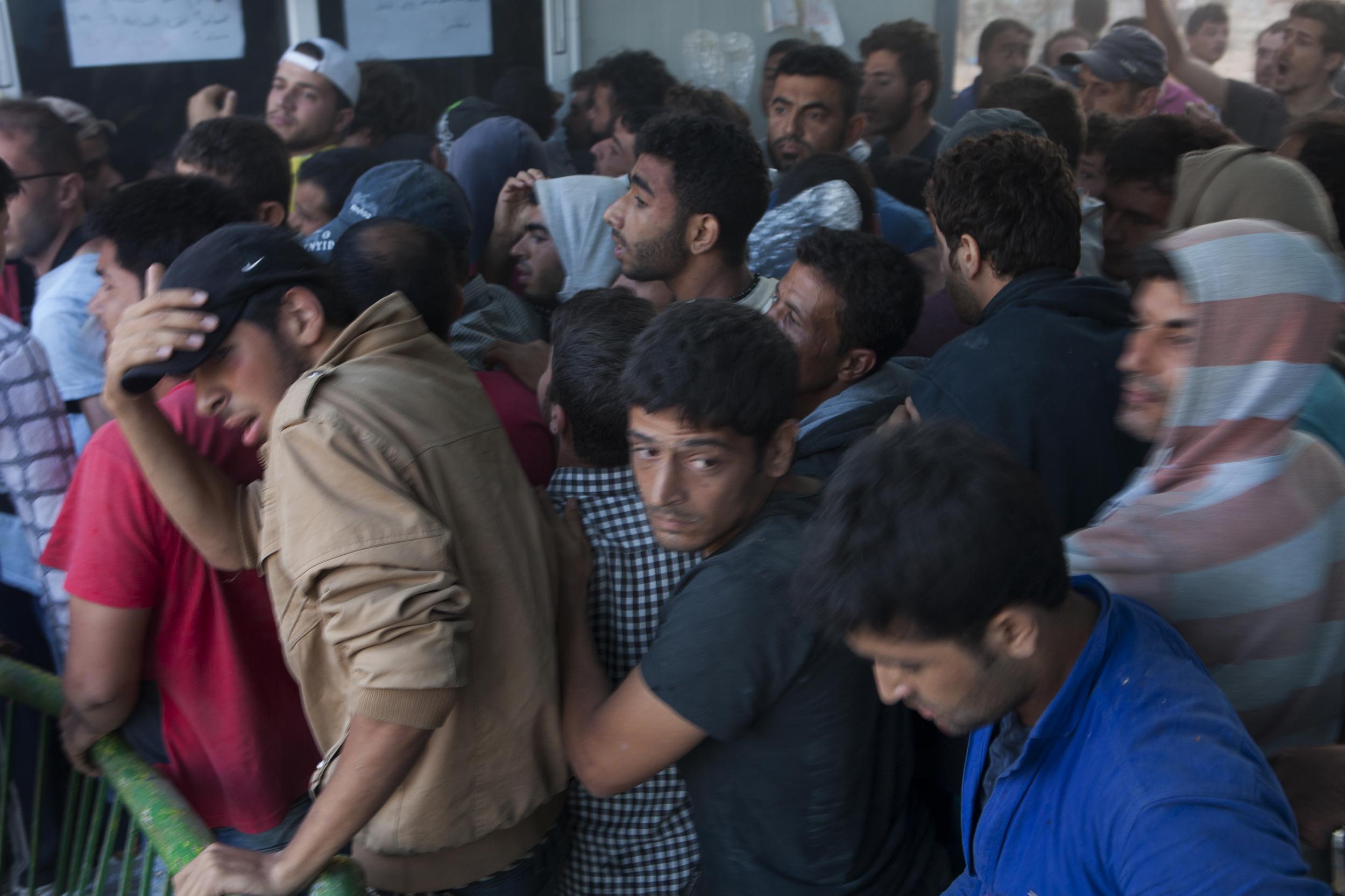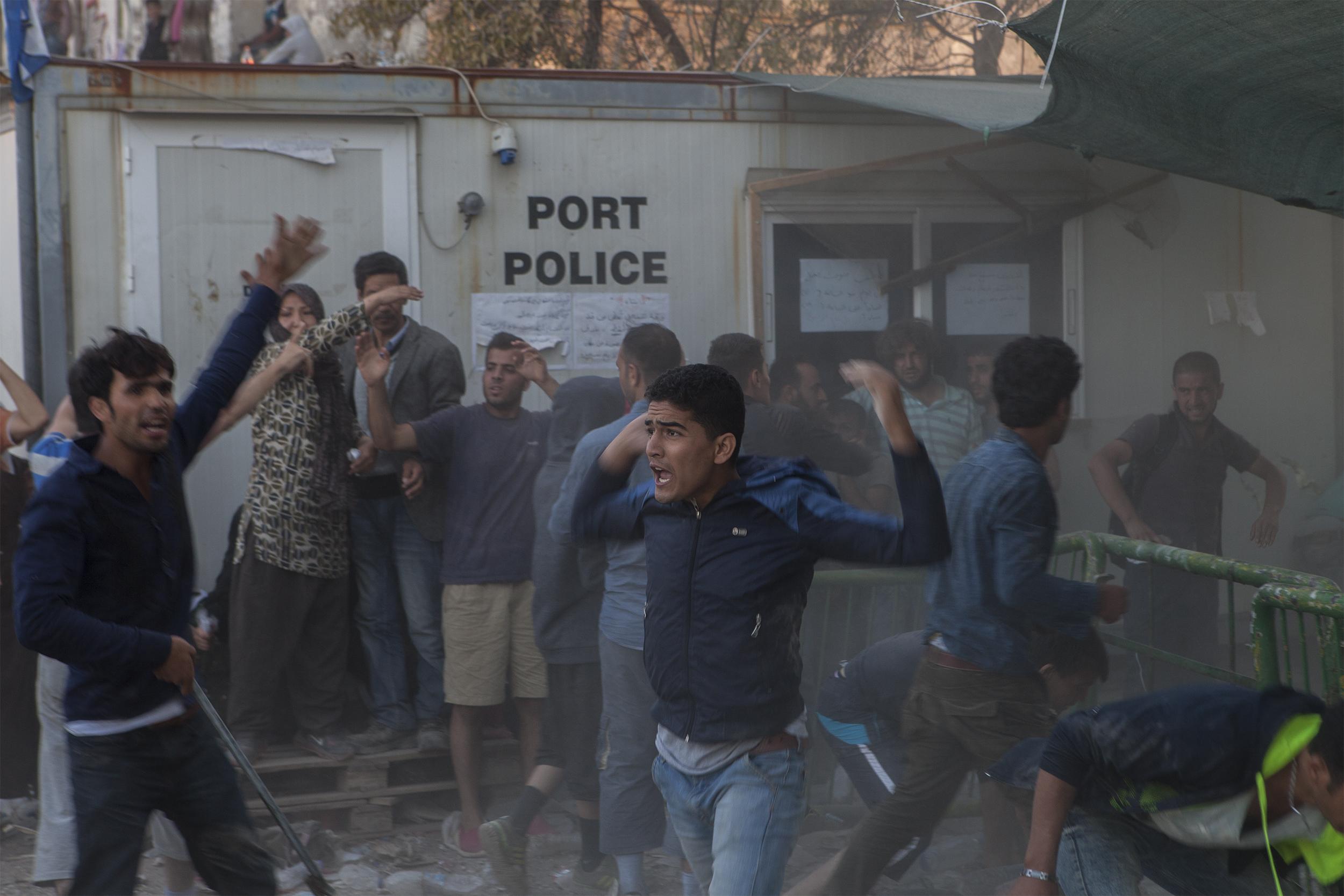 턱없이 부족한 행정 인력으로 그리스 본국으로 이동할 수 있는 허가서 발급은 더디기만 하였다. 난민들은 조바심에 새치기를 하거나 타국 출신의 난민들을 비난하고 싸움이 벌어지기도 하였다. 마치 이들 때문에 자신의 여정이 지체된다는 듯이. 2015년 9월 레스보스, 그리스