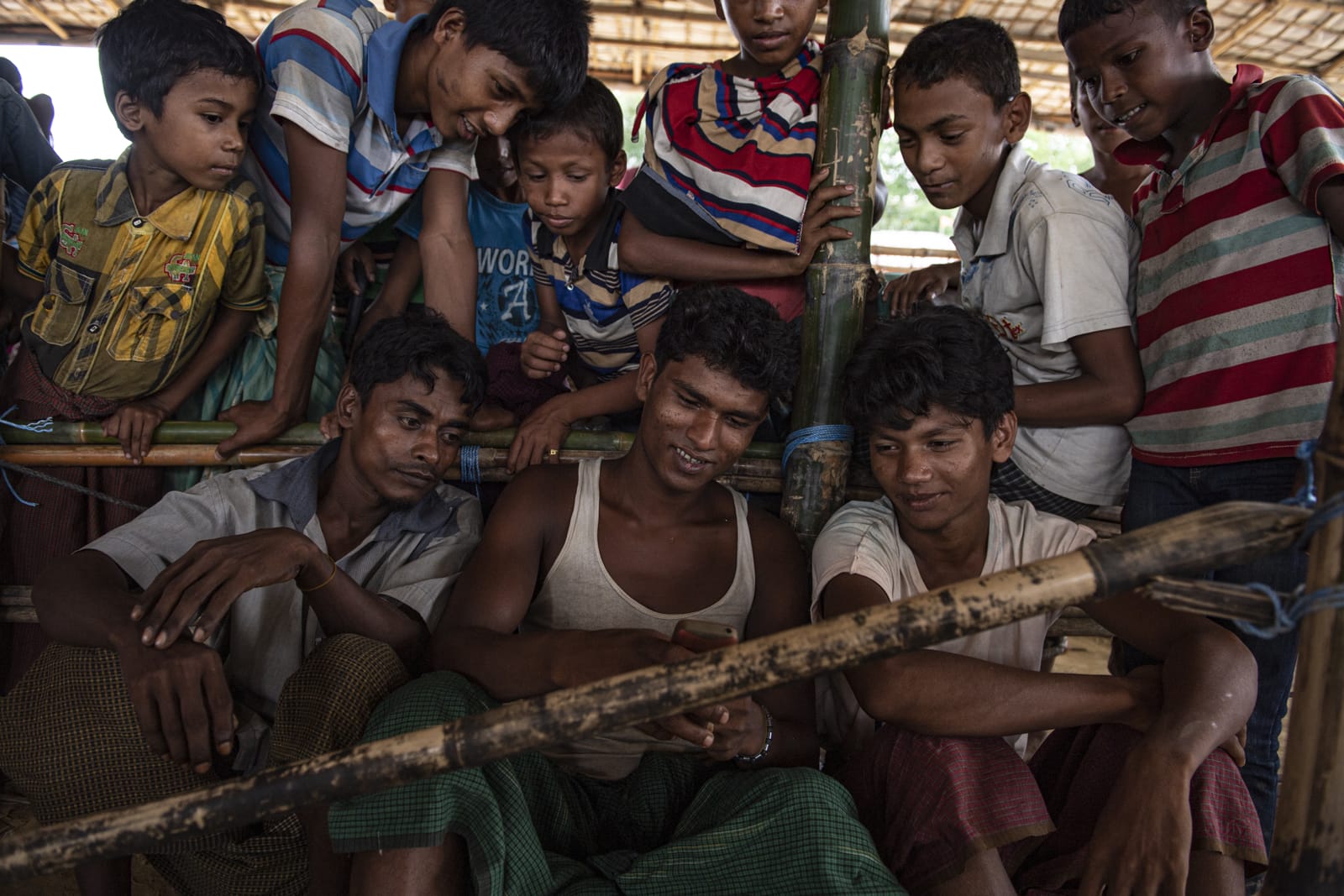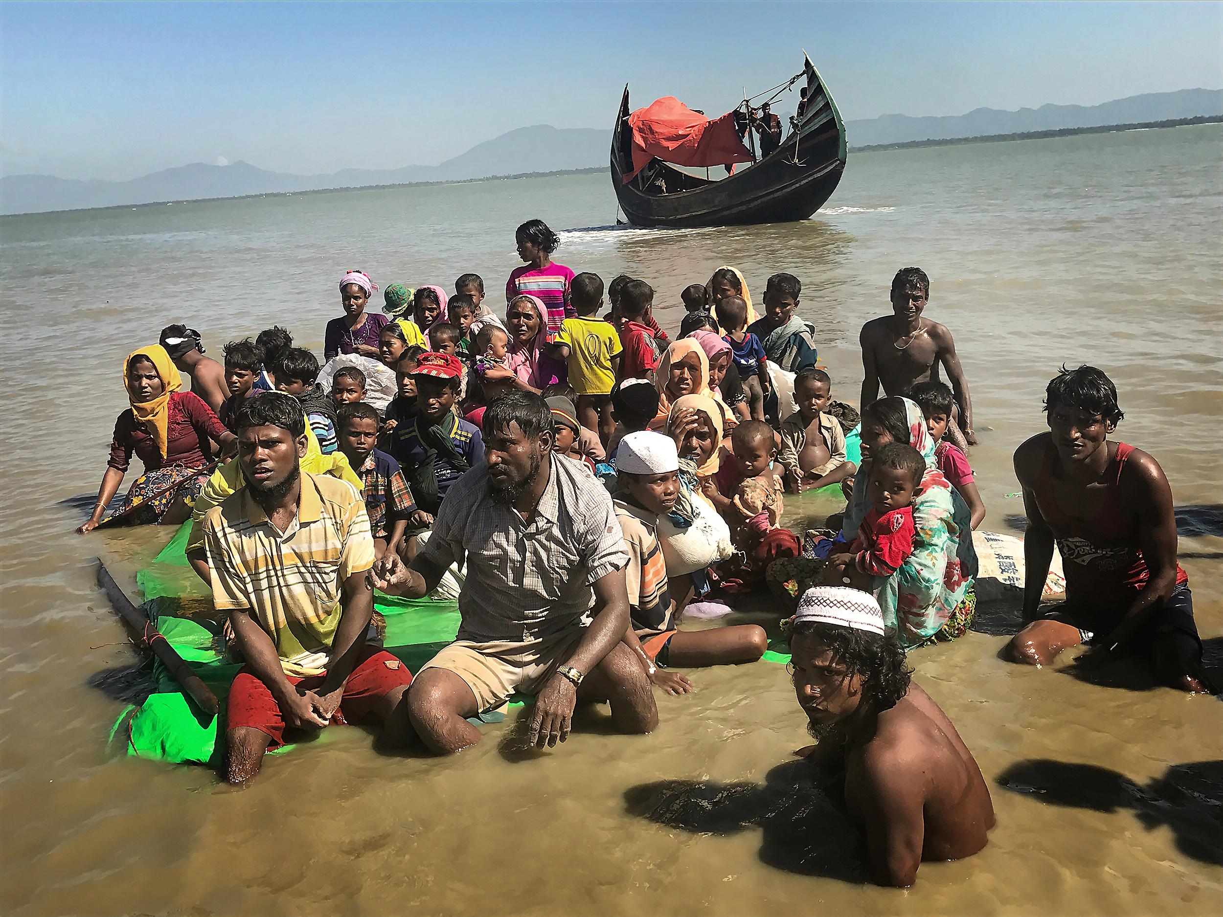 긴 물길을 건너기에 로힝야 난민들이 의탁하는 보트는 너무나 부실하다. 비어있는 컨테이너의 부력으로, 정원을 훨씬 초과하는 인원의 목숨을 건 여정. 마침내 도착한 방글라데시 해안가에서 안도의 한숨을 돌린다. 2017년 11월 다킨파라, 방글라데시