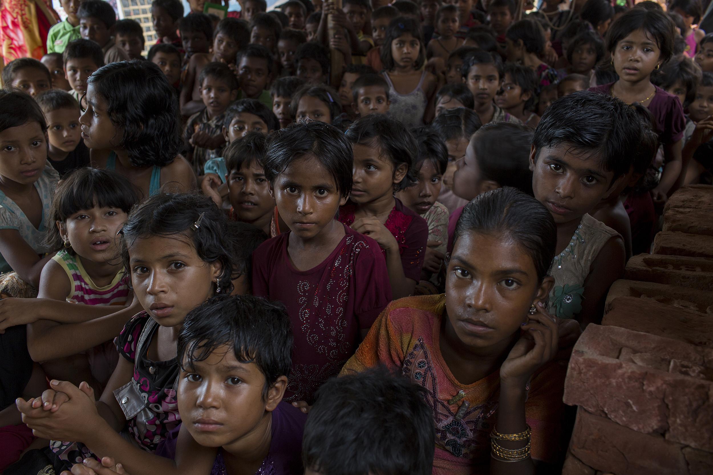 난민 캠프 곳곳에는 난민 아동들을 위한 학교가 있다. 많은 아이들이 캠프에서 나고 자라 성인이 되어서도 캠프가 있는 국경 근방에서 평생을 보내게 될 가능성이 크지만, 그래도 이들은 교육을 통해 상황을 벗어나리라는 실낱같은 희망을 버리지 않는다. 2017년 11월 쿠투팔롱캠프, 방글라데시