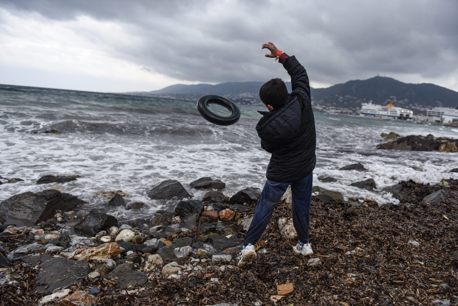 막 건너온 바다를 복잡한 심정으로 바라보고 있는 시리아 난민 가족. 그들을 맞아 주는 건 그들 이전에 도착한 이들이 남기고 간 흔적들 뿐. 이후 이 해안가는 도움의 손길을 주고자 하는 NGO와 자원봉사자들로 북적이게 되었다. 2015년 9월 레스보스, 그리스